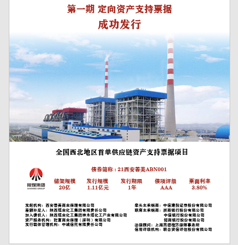 訪問次數:4433 8月12日,以公司上游客戶應收賬款債權作為底層資產的“西安善美商業保理有限公司2021年度第一期定向資產支持票據”在銀行... -
