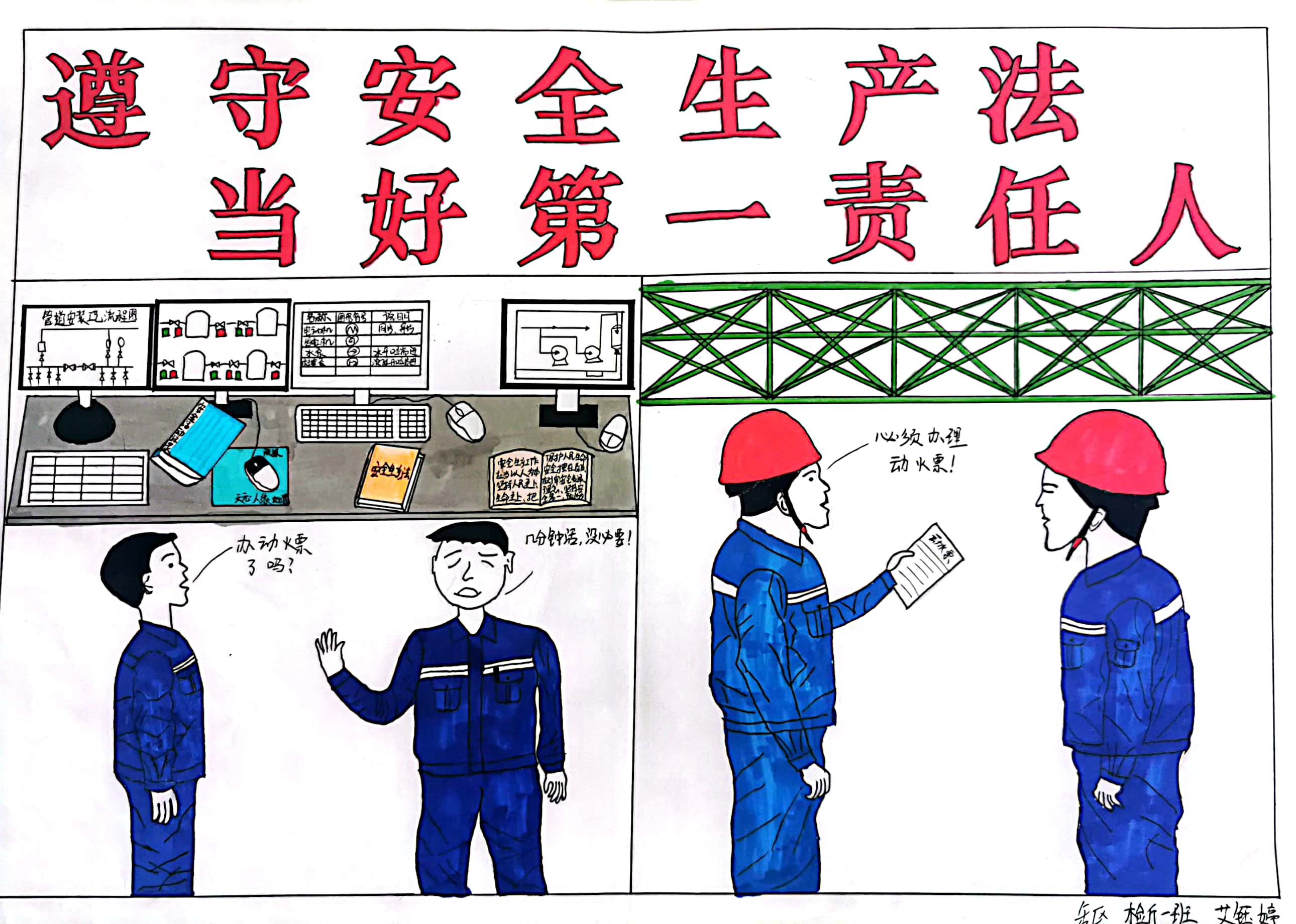 每幅作品都構思巧妙、寓意深刻、引人深思,緊扣“遵守安全生產法,當好第一責任人”主題,緊貼日常工作。其中,有家人的叮囑,有現場的典型違章及預防措施的呈現,有作業人員現場工作的內心活動……一幅幅漫畫作品充分展示了一線職工對安全生產的感悟和認知。(張趙鋒)