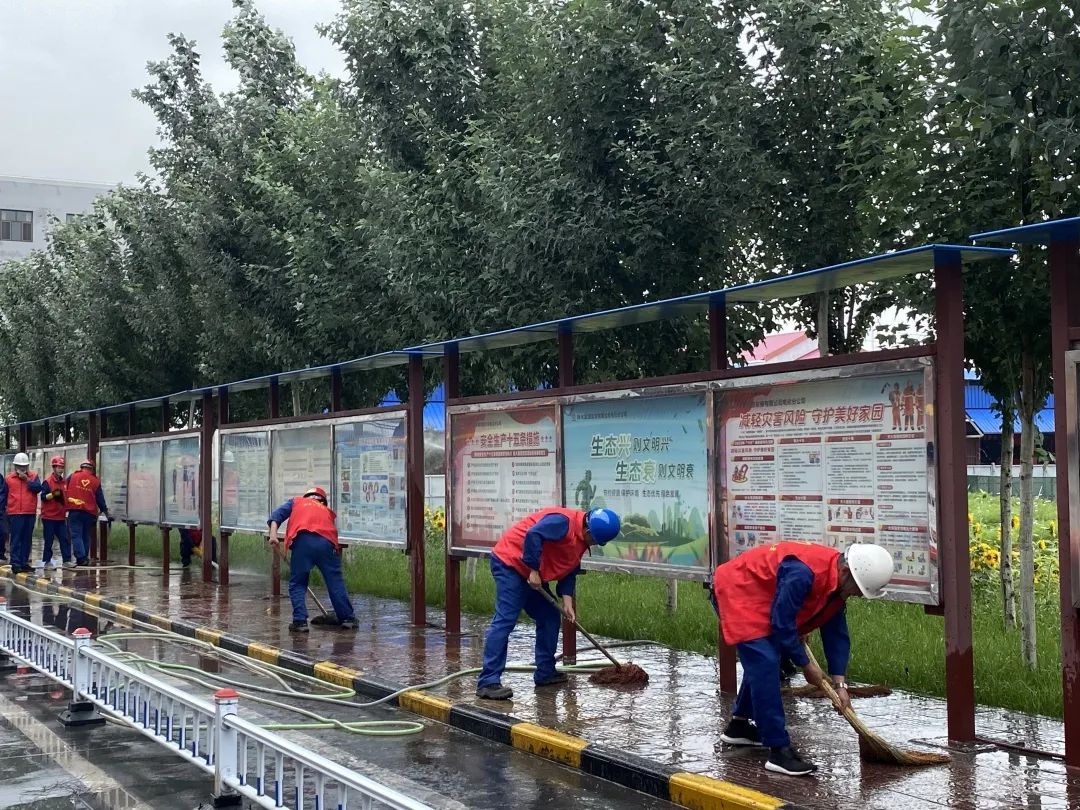 隨后,全體黨員化身“四化工廠”建設志愿者,身著志愿紅馬甲,手拿抹布、掃帚、拖把、清潔液等工具對生產區文化長廊及人行通道進行衛生大掃除。大家以熱情飽滿的精神,認真地將文化框、玻璃、展板、人行馬路以及周邊綠化帶里的灰塵、雜物、垃圾清理干凈,盡心盡力為大家創造一個干凈整潔的工作環境。經過2個小時的奮戰,文化長廊面貌煥然一新,玻璃亮了、展板凈了、道路也露出本來的“高顏值”。