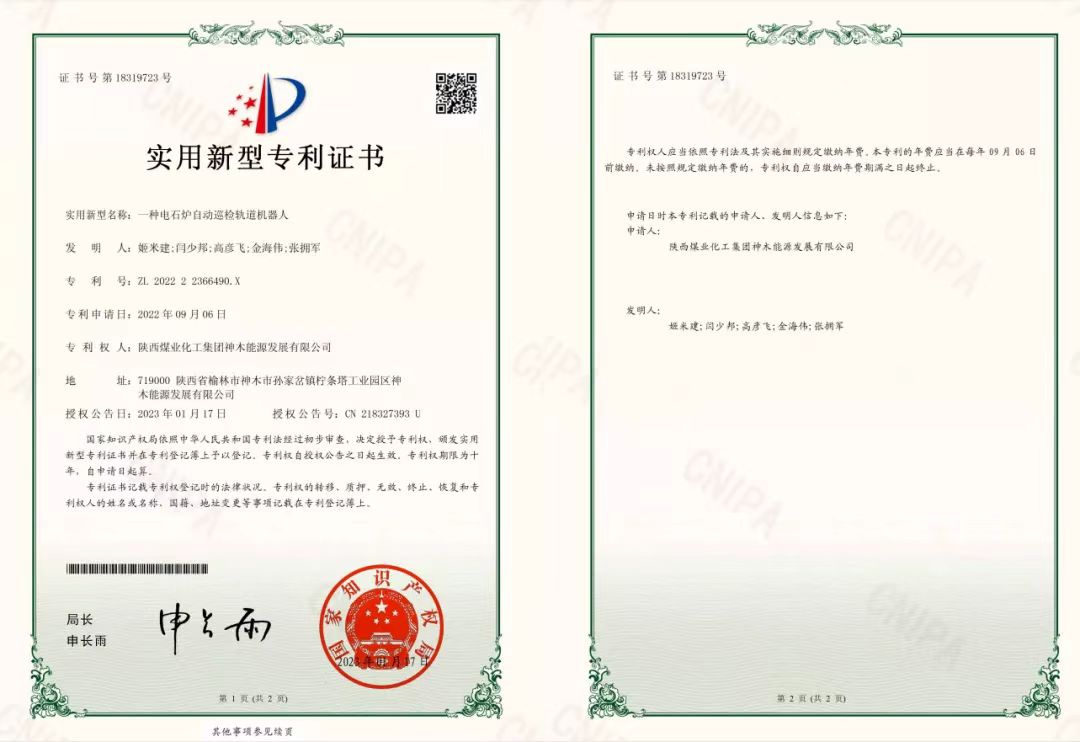 近日,隨著程序員最后一道調度指令正式執行完畢,神木煤化工能源公司安全“偵察兵”電石爐自動巡檢軌道機器人正式開機投用,且于1月17日,該項目申請國家實用新型專利并成功獲批。