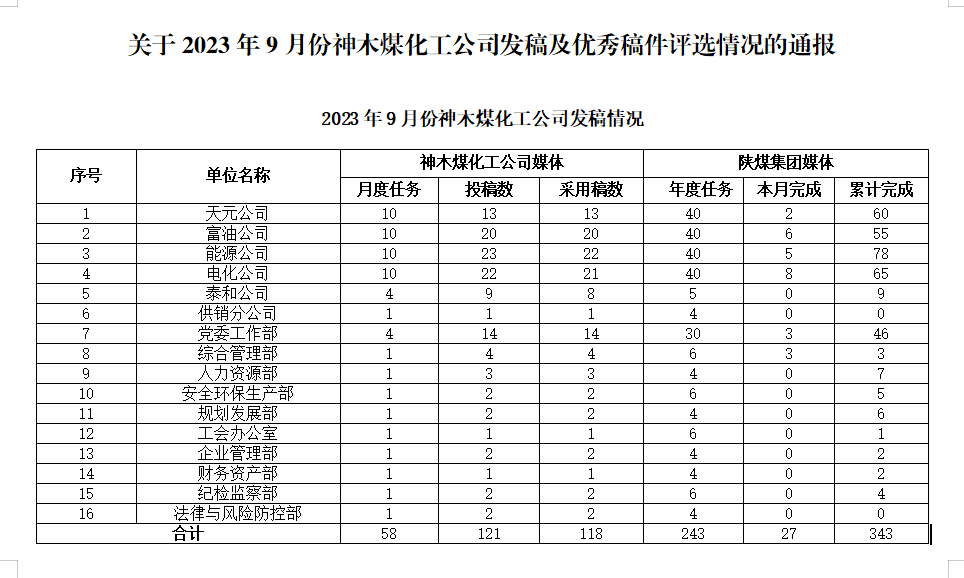 關于2023年9月份公司發稿及優秀稿件評選情況的通報