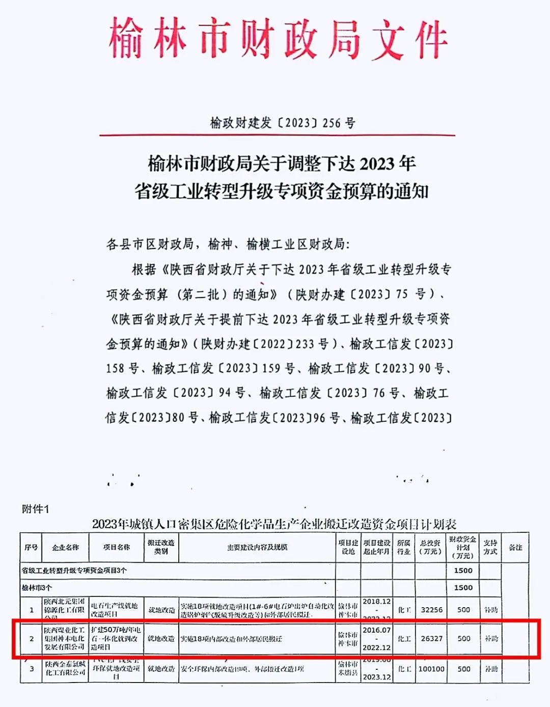 530萬元!電化公司獲得陜西省工業轉型升級專項資金