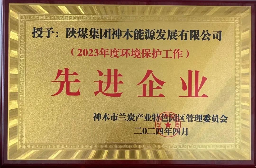 喜報!能源公司榮獲神木市蘭炭產業特色園區“2023年度環境保護工作先進企業”稱號