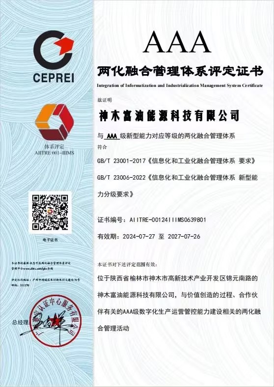 近日,富油公司兩化融合管理體系貫標通過工信部評定審核,正式獲得兩化融合管理體系AAA級評定證書,成為陜煤集團化工板塊首家獲此殊榮的企業。AAA級是目前兩化融合管理體系開放申請的最高評定等級。