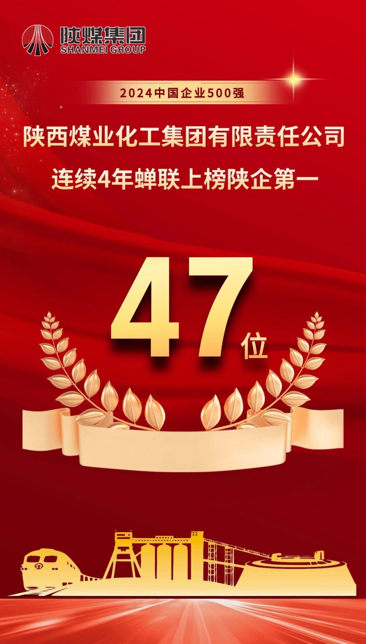 9月11日,在2024中國500強企業高峰論壇上,中國企業聯合會、中國企業家協會連續第23次向社會發布了“中國企業500強”榜單。陜煤集團以2023年營收5293.6億元位列第47位,較上年排名前進4位。