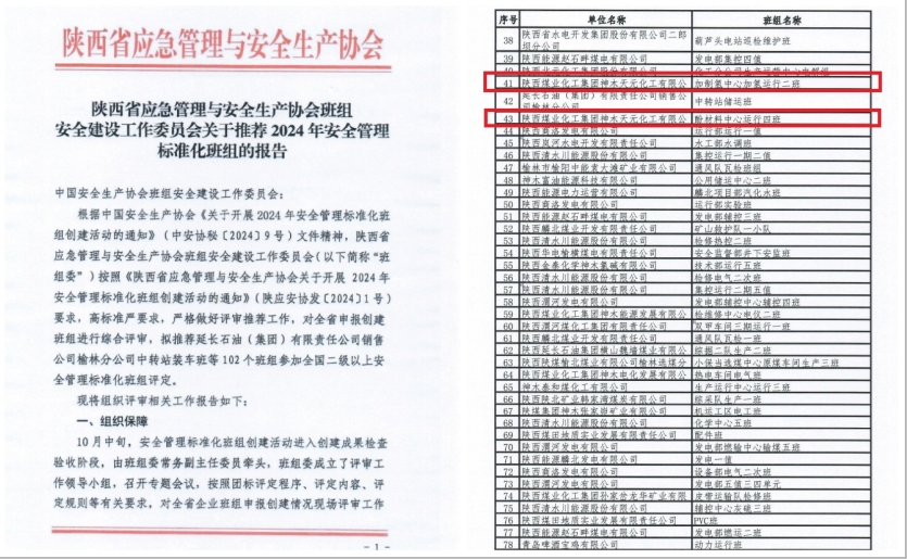 近日,神木煤化工所屬天元公司班組建設再獲喜訊,加制氫中心加氫運行二班、酚材料中心運行四班兩個班組順利通過陜西省安全管理標準化班組評審,獲得了全國二級以上安全管理標準化班組評定審核資格。