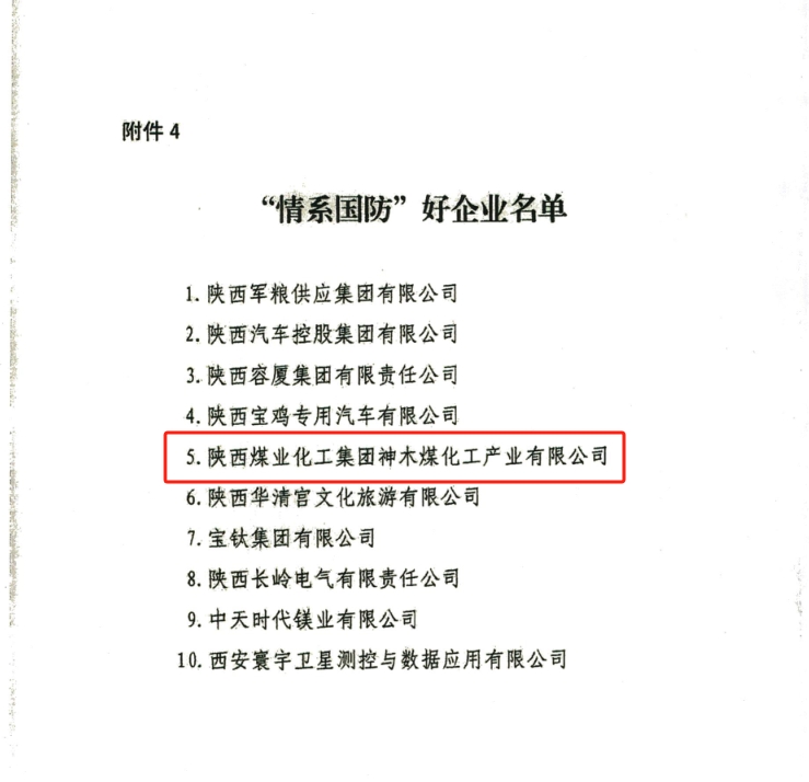 集團網站 | 神木煤化工獲評“情系國防”好企業