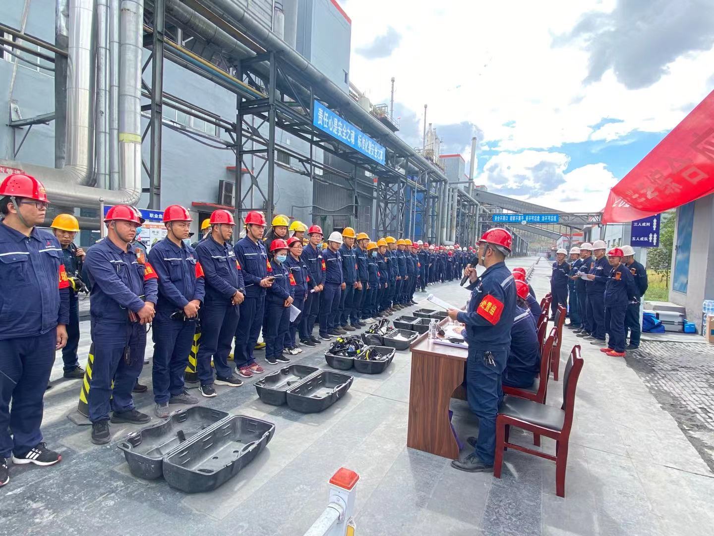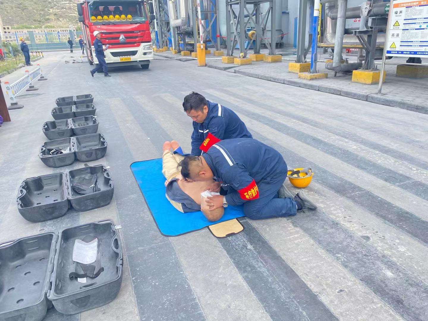 近日,神木煤化工電化公司在電石分廠緯二路開展2021年綜合應急演練,演練背景為模擬6#電石爐C相變壓器跳停著火,一人一氧化碳中毒心臟驟?,F場救護。