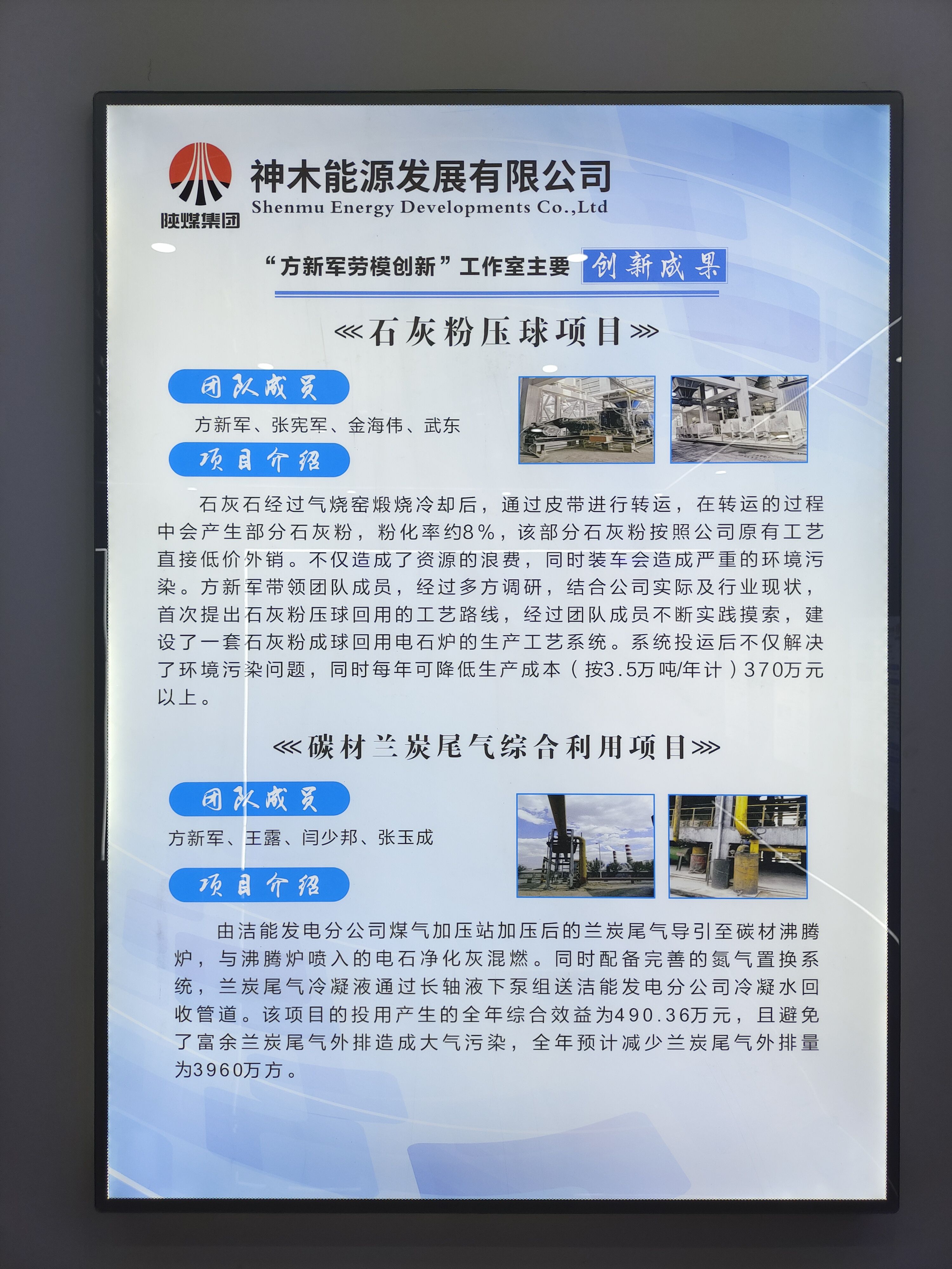 “典例上墻”展風(fēng)采。能源公司將《石灰粉壓球項(xiàng)目》《蘭炭小料的摻燒》《電石爐智能化升級(jí)改造》《一二期主蒸汽、朱凝結(jié)水管道并聯(lián)項(xiàng)目》《現(xiàn)代化集中控制室升級(jí)改造》等重要?jiǎng)?chuàng)新成果定制成欄,裝于墻體,以激發(fā)員工創(chuàng)新意識(shí),增強(qiáng)員工創(chuàng)新能力,加強(qiáng)各分公司之間的科技創(chuàng)新與交流互鑒,優(yōu)化科研管理并促進(jìn)公司技改技措及轉(zhuǎn)型升級(jí)發(fā)展。