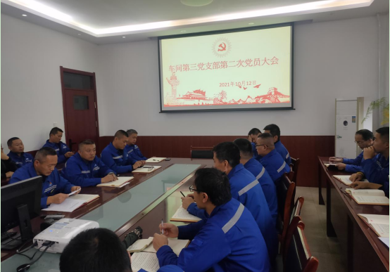 10月13日,生產第三黨支部召開第三季度黨員大會,組織全體黨員集中學習了習近平總書記來陜考察重要講話重要指示精神。會議要求,黨員要帶頭講黨課、做宣傳,將習近平總書記來陜重要講話重要指示精神進班組、進崗位。