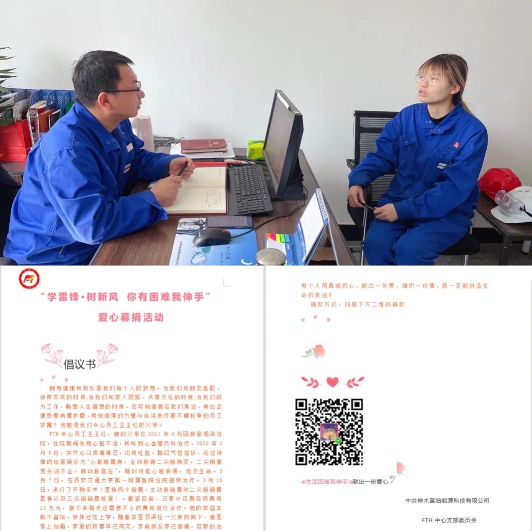 “你有困難我伸手”。人們常說平安是福,但往往世事難料,為幫助中心員工患病家屬,FTH中心黨支部真真實實地詮釋了“一人有難八方幫,共同援手顯真情”這句話。支部書記牛小強第一時間找到了王玉紅本人,了解其父親的治療情況、術后恢復情況,以及來公司近期的生活、工作情況,希望她能放下思想包袱,相信困難是暫時的,黨組織是她堅強的后盾。并號召支部全體黨員、青年團員向本中心職工王玉紅進行愛心捐款。真情傳遞溫暖,愛心點燃希望,這次愛心捐款活動,體現了FTH中心黨支部對職工的溫情關懷,也體現了職工之間關愛互助的優良風范。