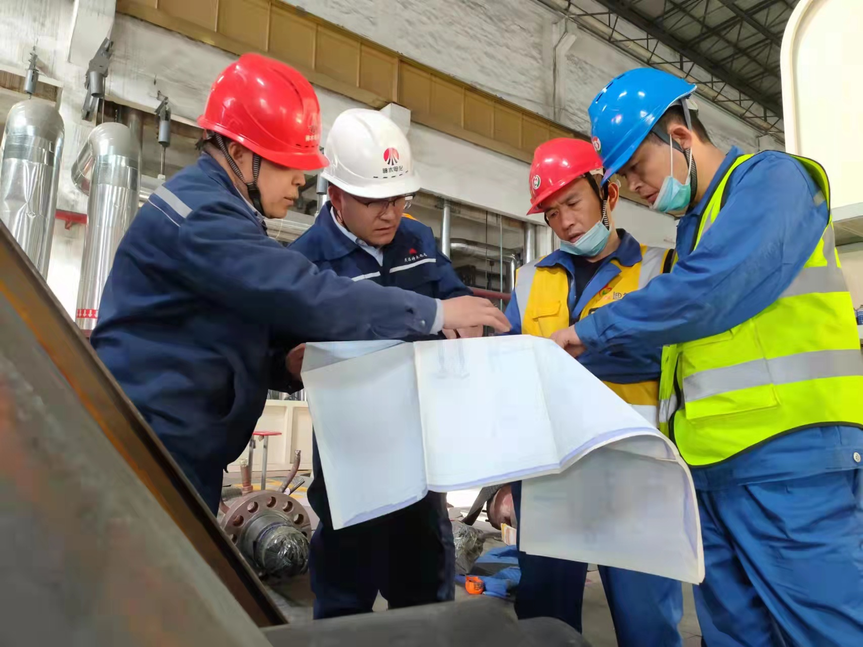“會前空氣呼吸器的講解你學到了啥?”“壓力要大于28MPa,報警哨要在壓力低于5MPa時能夠立即報警,面罩佩戴氣密性要好... ...”上崗前,機關人員在“師傅們”的現場授課和示范演練下,不僅知曉了廠區的所有風險點和注意事項,還學會了各類應急救援知識。干什么就要像什么,學員們跟著師傅轉廠區、爬樓梯、查設備、看數據、做記錄,一邊熟悉生產設備,一邊了解工藝流程。遇到不懂之處,學員們及時請教師傅,并認真做著筆記,一天班上下來,不僅對工藝流程脫口而出,還能獨自完成工藝流程圖。“今天走了2萬多步,是我走得最多的一次,有30多個好友點贊。”一個學員的一句話道出了基層工作的不易,也讓人看到好的工作作風,就是要“接地氣兒”,就是要踏踏實實的,一步一個腳印。