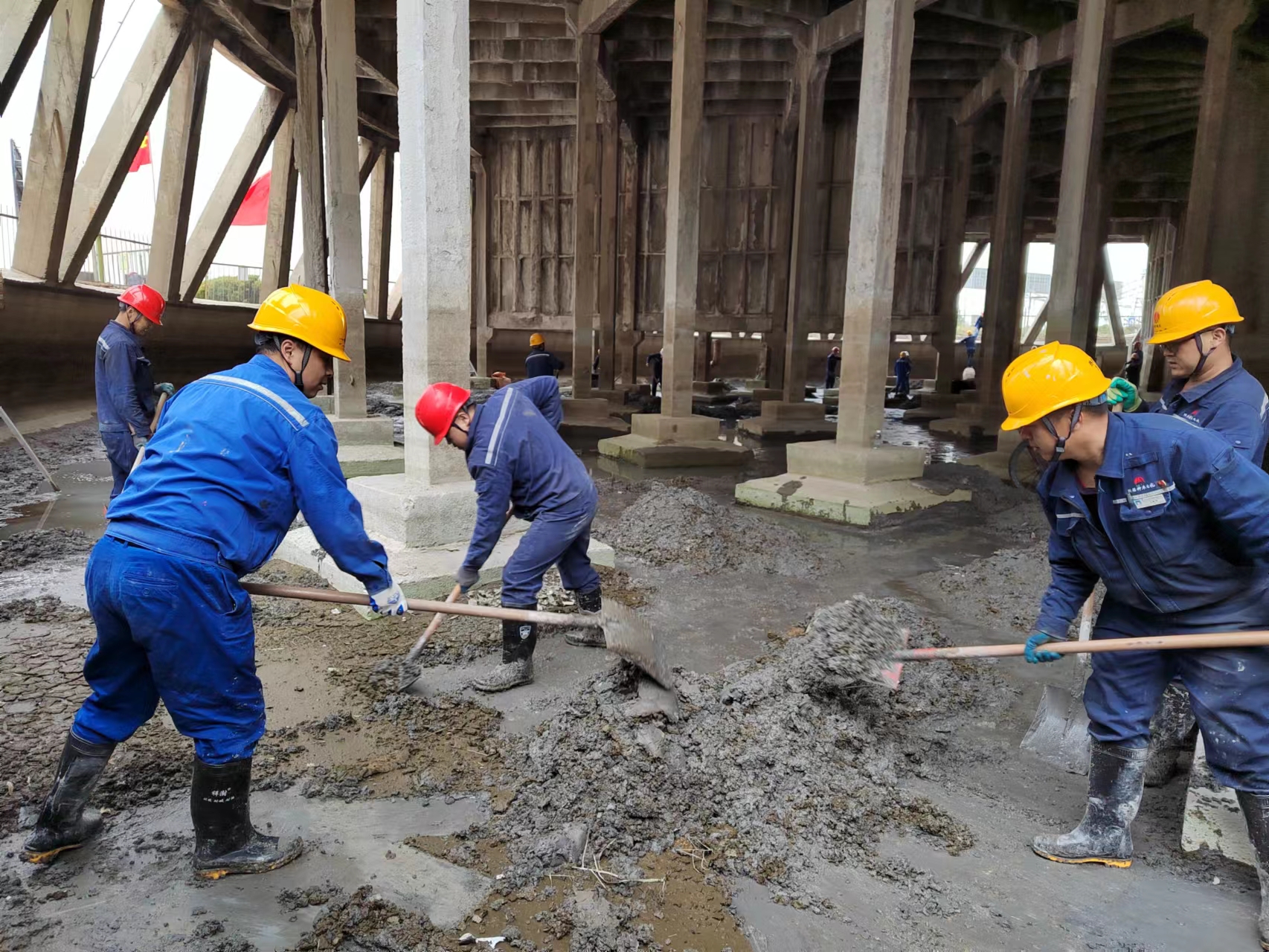 近日,神木煤化工電化公司熱電分廠3#機組冷卻塔池底淤泥清理工作正在緊鑼密鼓地進行中。在池底清理淤泥的工人師傅們怎么有些眼熟,走近一看,原來是由熱電分廠副廠長王武超帶隊,副主任工程師劉軍牽頭,動員熱電分廠工段長、技術員、班值長、黨員突擊隊等40余人一起來參加清理淤泥活動。