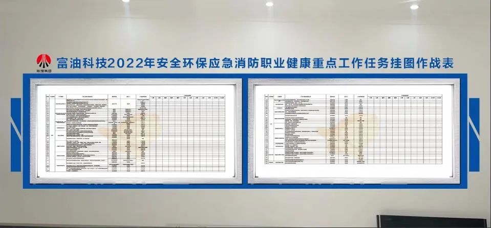 掛圖作戰,掛出的是決心,曬出的是工作。今年,富油公司根據上級公司要求,全面梳理2022年安全、環保、消防和能效提升工作,實施“掛圖作戰”,全力確保全年重點工作上墻入心。